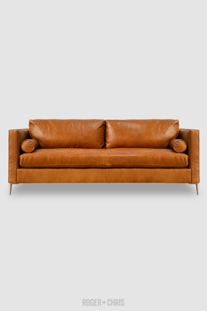 Natalie Mid Century Moden Sofa In Caprieze Copper Glaze Brown Leather With Aluminum Legs And Bolster Pillows Roger Chris
