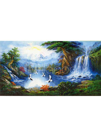 Fabulous 90*160 cm Waterfall Cranes Canvas Hand Oil Painting Of Landscape - Milanoo.com