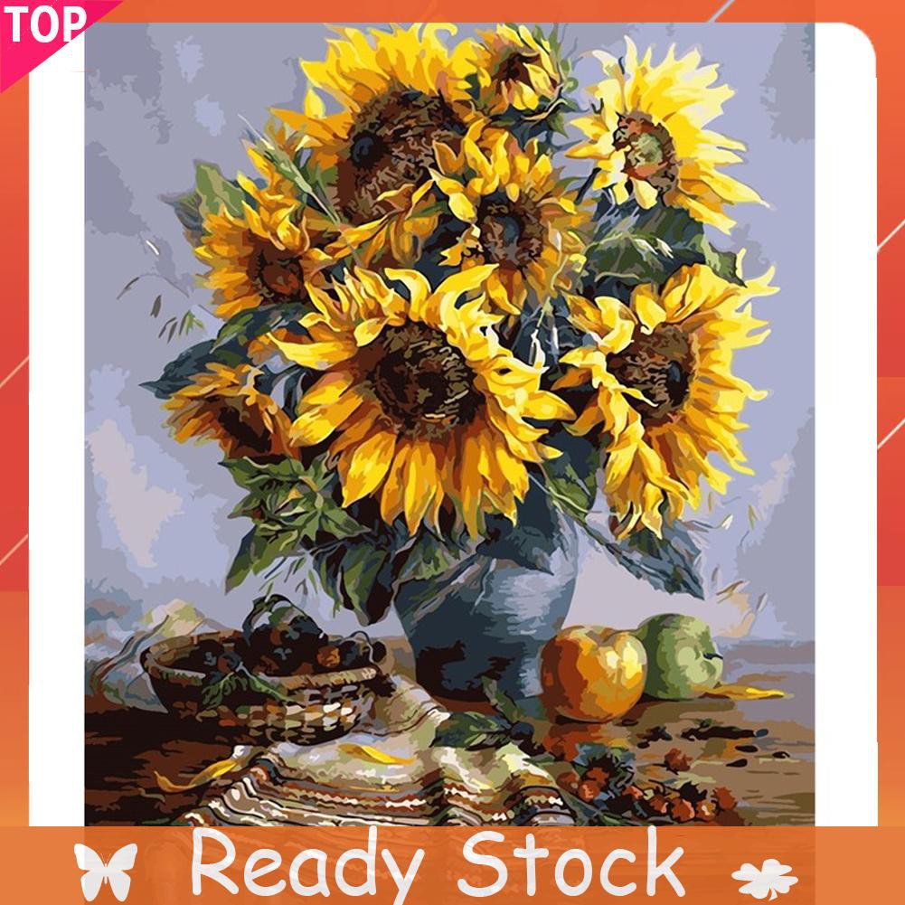 Ready Stock Sun Flower 40x30cm Diy Paint By Numbers Oil Painting Kit Canvas Shopee Philippines